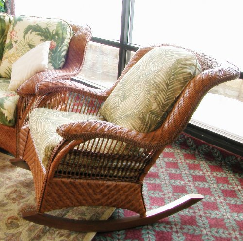 For a new sharp look for your sunroom or porch, use our Rattan Rocker Cushions and rock more comfortably. Rattan Rocker Cushions: -Set includes 1 back and 1 bottom cushion. -Back cushion has 2 ties for a secure fit. -Back cushion made of polyester fiber; seat made of foam with dacron wrapping. Rattan Rocker Cushions: *Back Cushion: 21 Inches Wide, 24 Inches High, 5 Inches Thick *Bottom Cushion: 21 Inches Wide, 21 Inches Deep, 5 Inches Thick. Straight on all 4 sides. Our Rattan Rocker Cushions ship in 3-4 weeks with your choice of fabric! Rattan Rocker Cushions fabric choices
